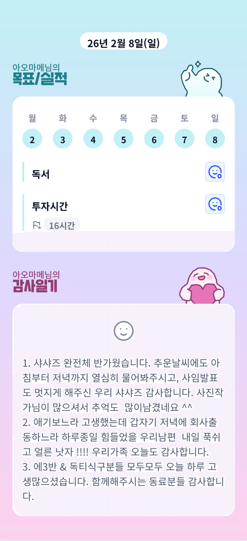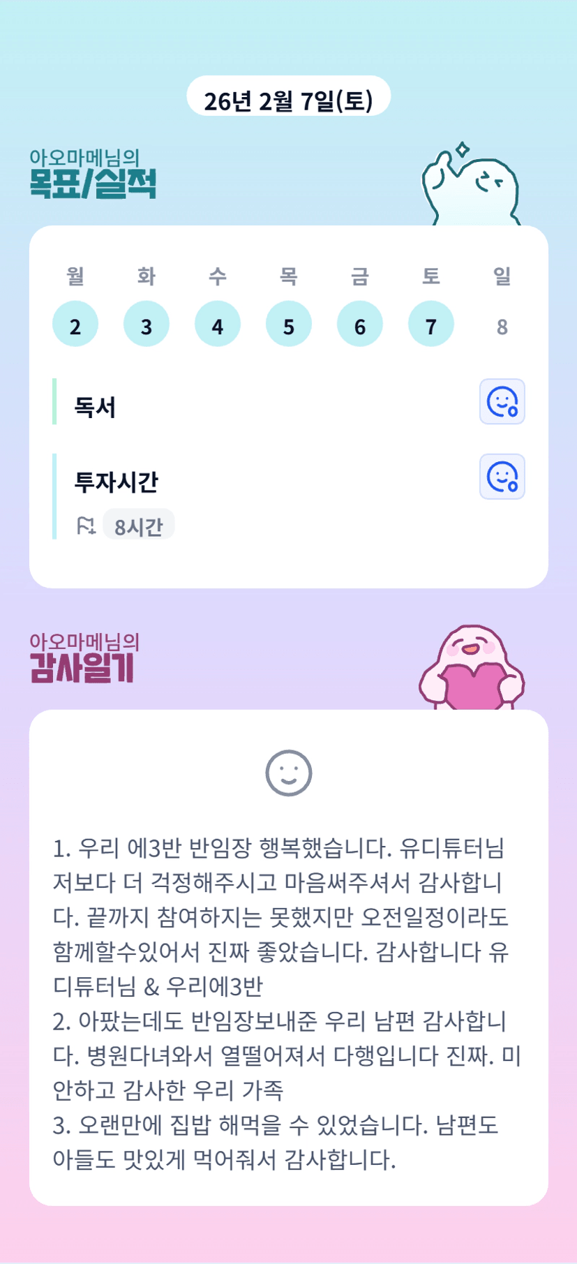 튜터님ㅠㅠ 어제 정말 귀하디귀한 튜데였네요! 튜터님과 소중한 시간 보내서 넘 행복했습니다♡ 진심으로 감사드립니다!