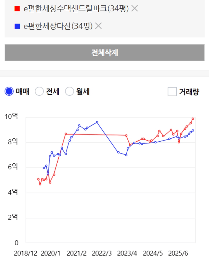마지막 비교입니다. 두번째는 구리와 다산(남양주)입니다.