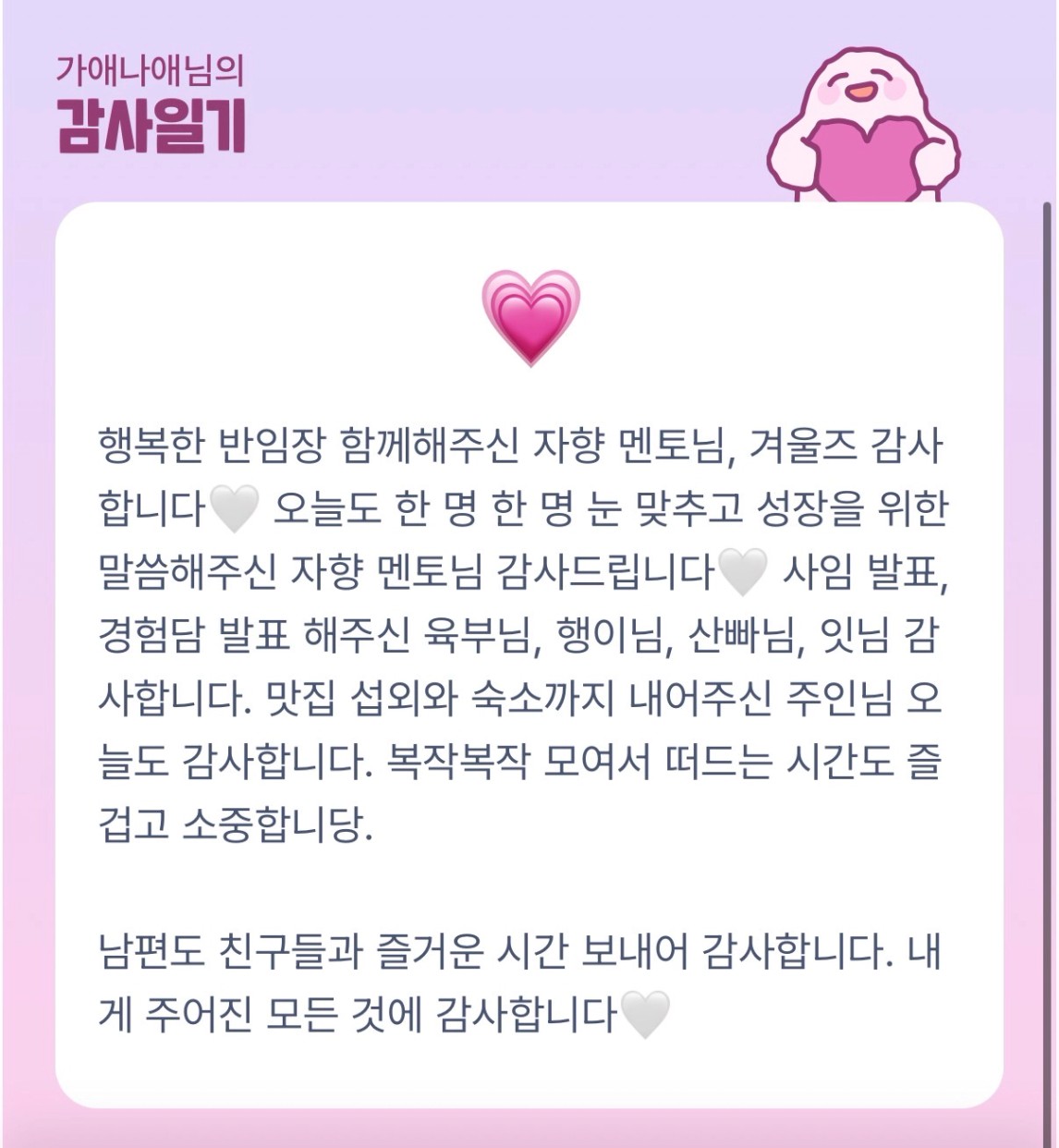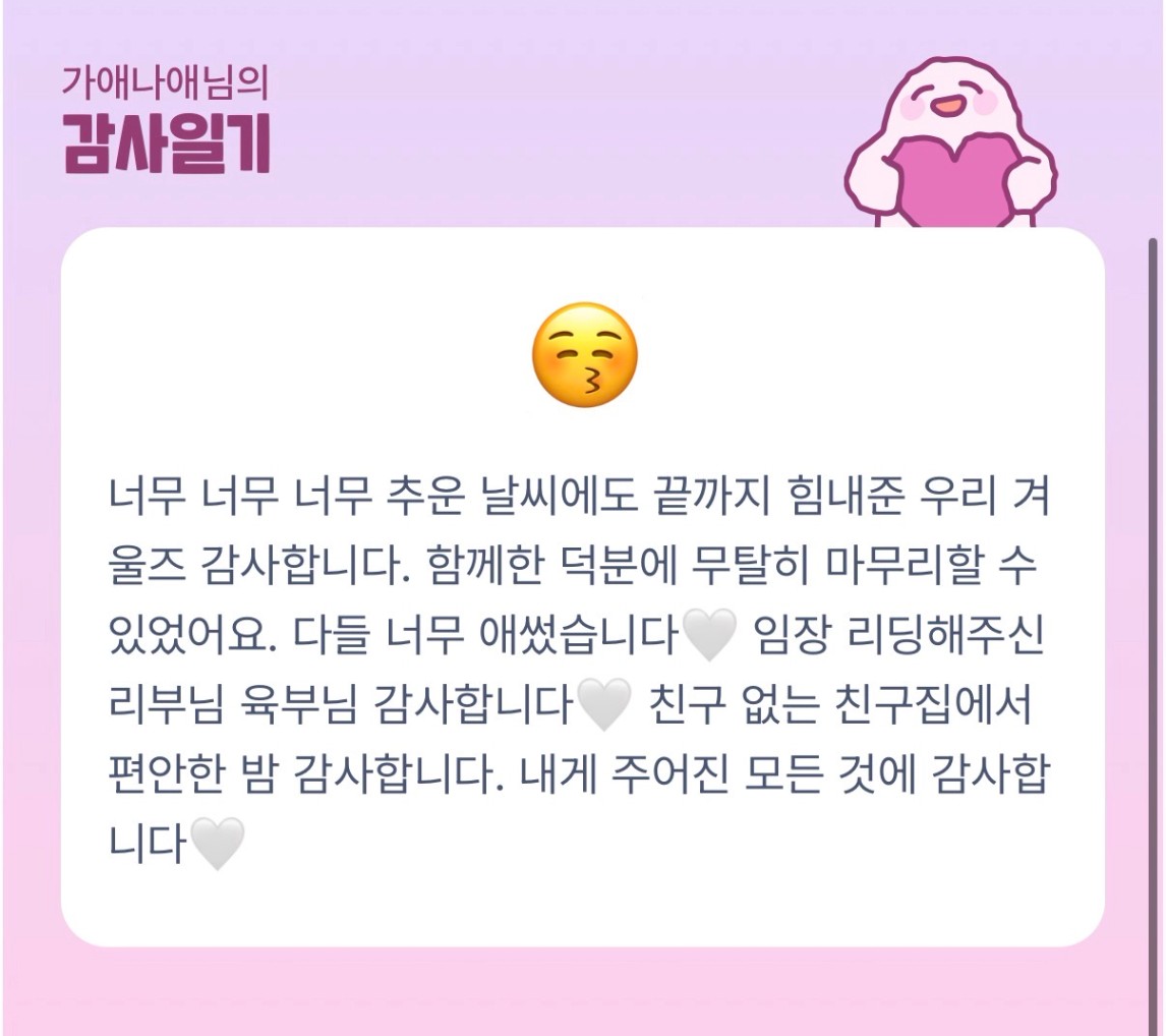 항상 감사한 마음을 잃지 않는 나애님 감사합니다💛