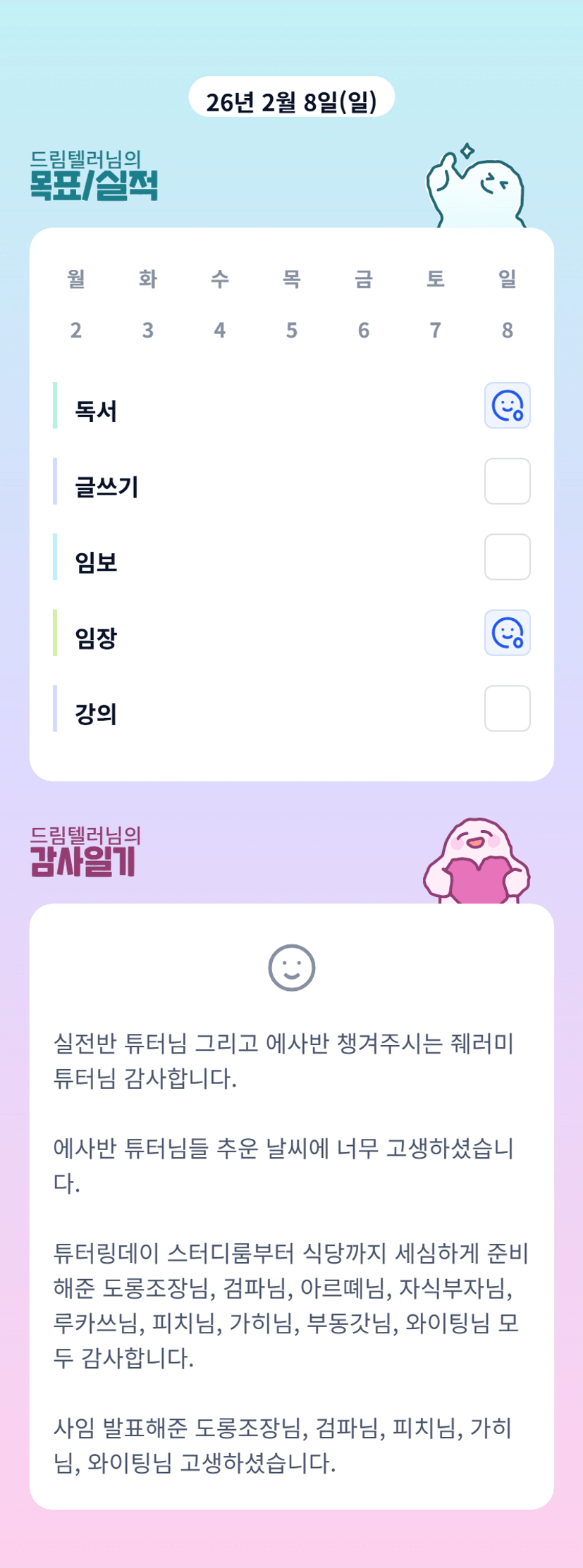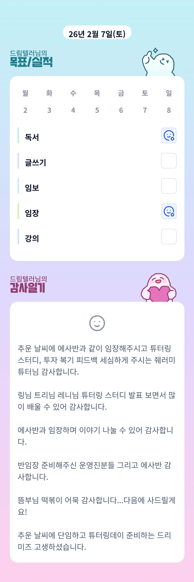 튜터님!!!! 추운날 추위 못느끼게 하루를 꽉 채워주셔서 감시합니다!🩷