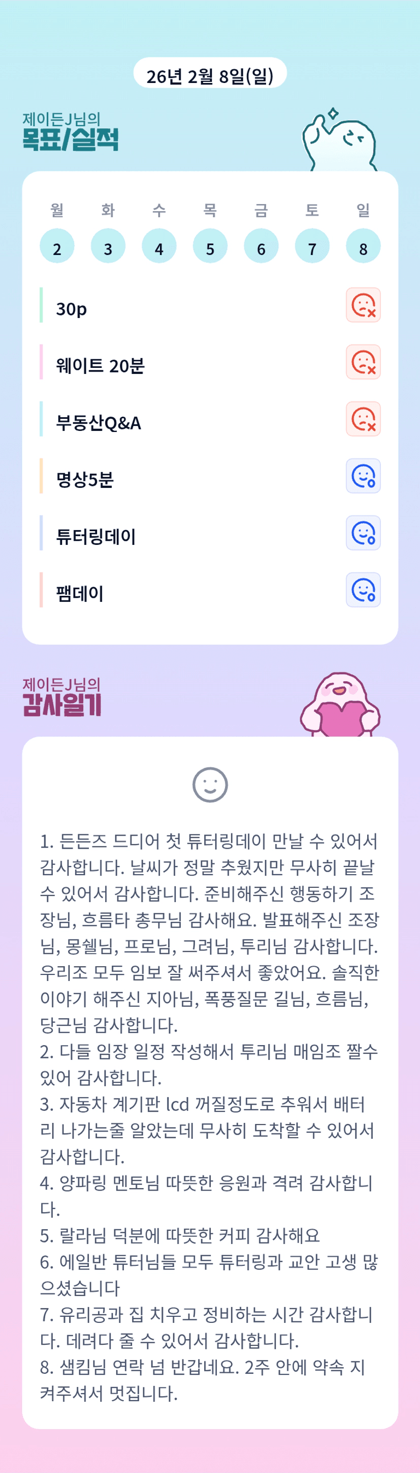 튜터님 영접할 수 있어 너무 행복했습니다 오늘도 좋은 하루 되세요🙂↕️