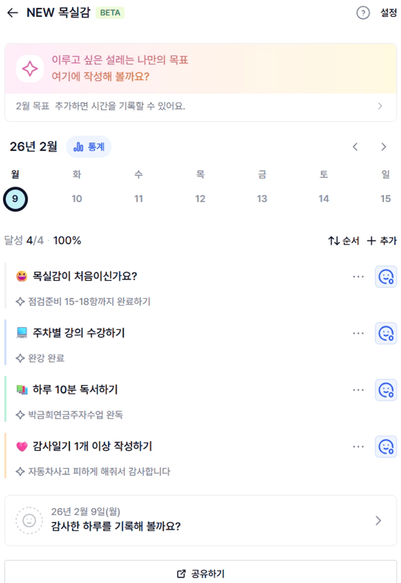 다음 날 부터 다시 새로운 마음으로 목실감 작성하기를 꼬옥 해주시기 바랍니다!