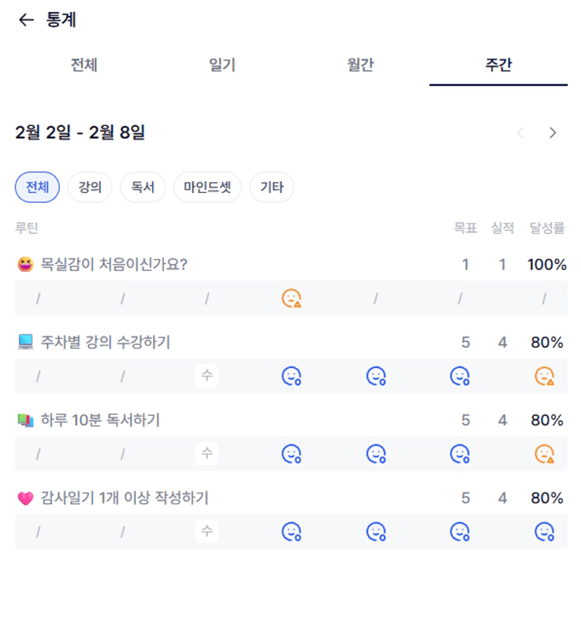 2️⃣ 이번 주 목실감을 작성하면서 느낀점과 더불어 한 주 스스로 어떻게 지냈는지 간단한 회고를 적어보아요 :)