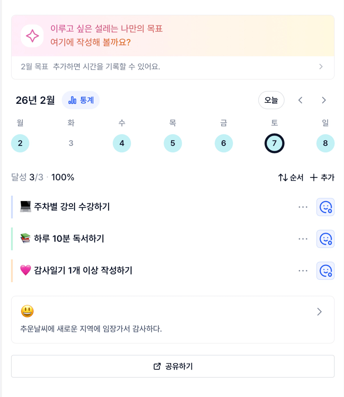 2️⃣ 이번 주 목실감을 작성하면서 느낀점과 더불어 한 주 스스로 어떻게 지냈는지 간단한 회고를 적어보아요 :)