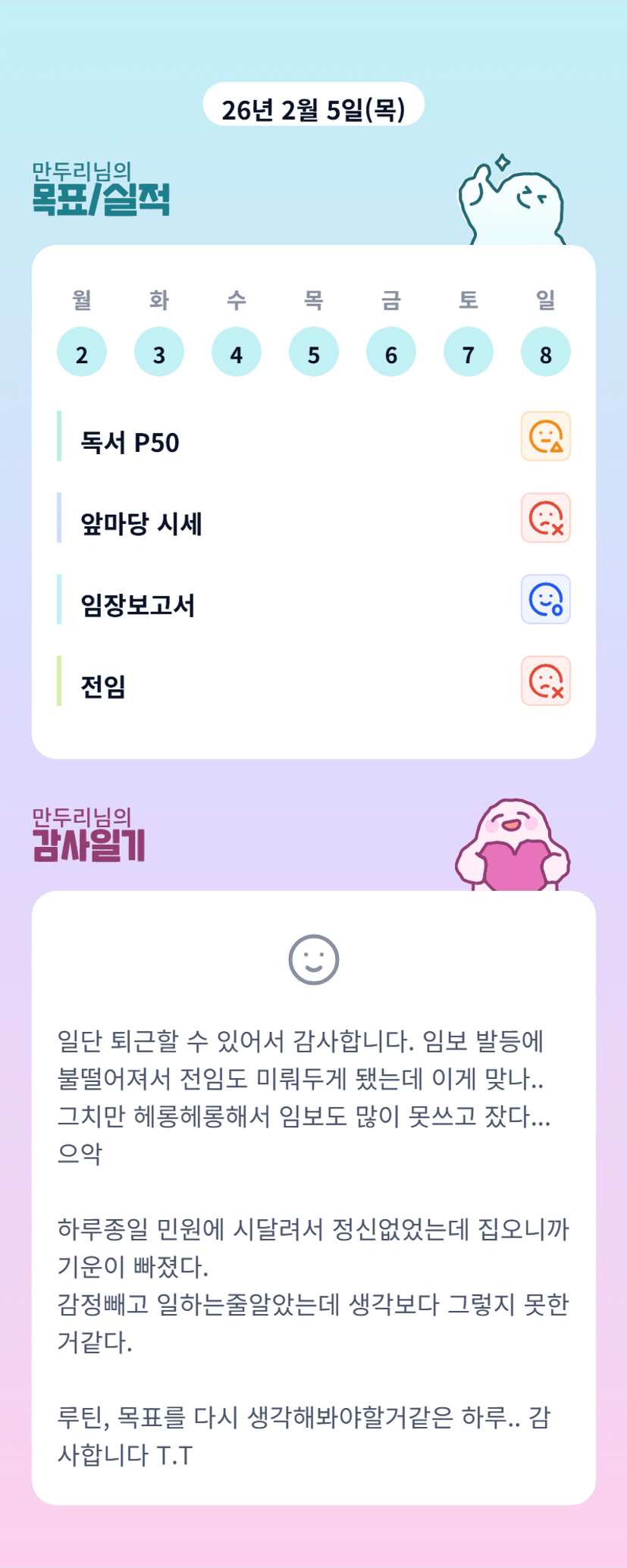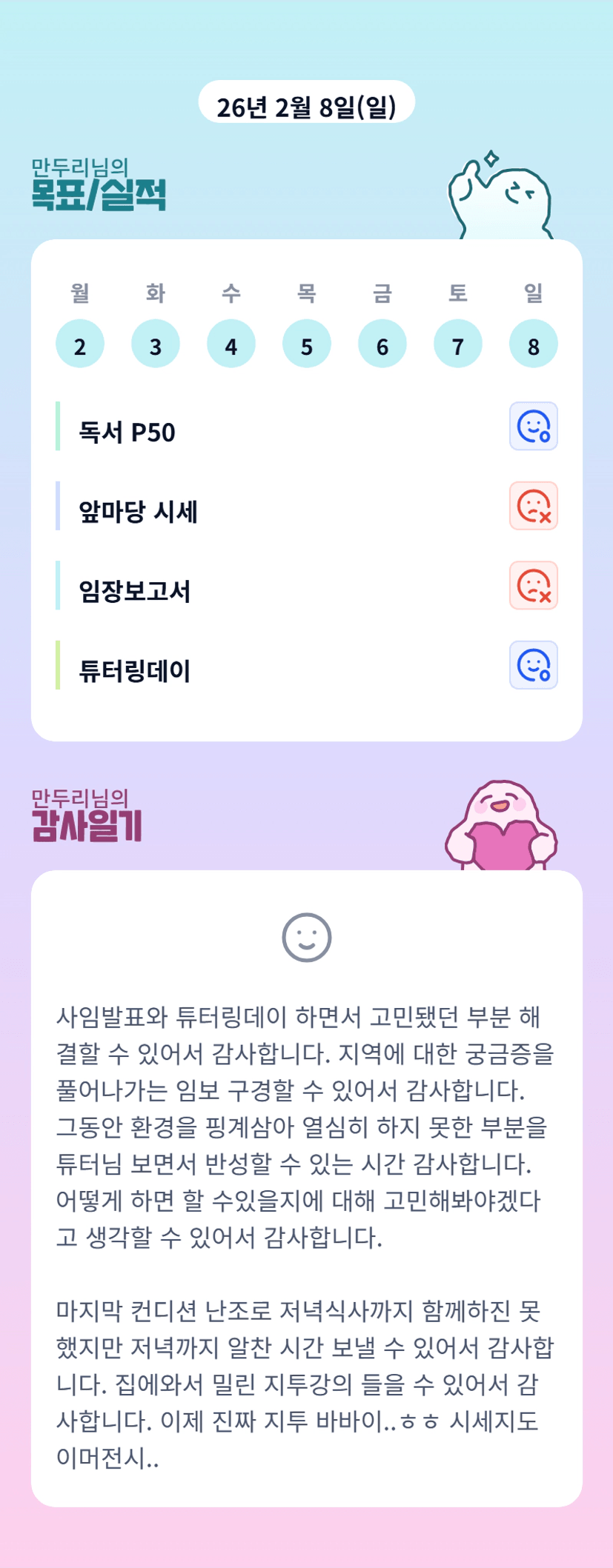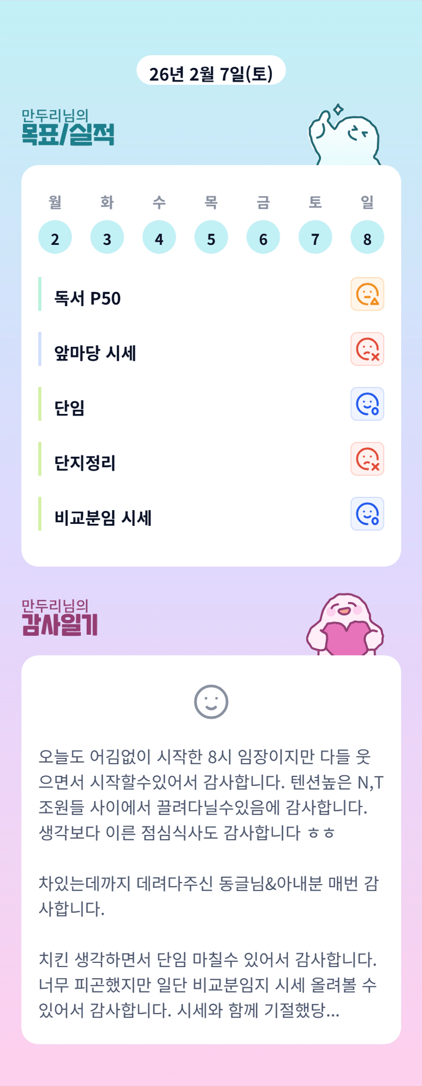 이번한주는 보다 좋은 컨디션으로 보낼수 있기를 만두리님 응원해요~~