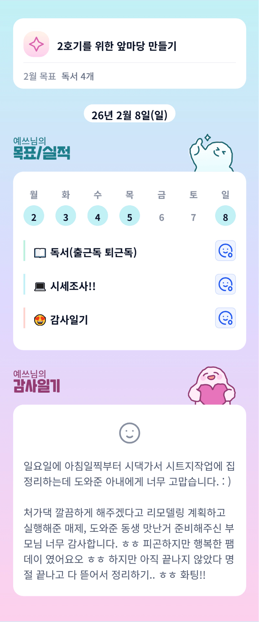 월부 동료들과 꾸준하고 성실하게 목표한바 이루고 싶습니다 !! 예쓰!!!