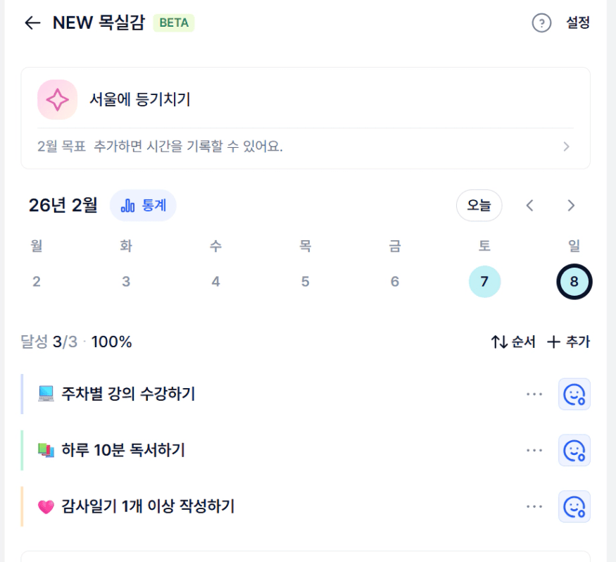 과제를 위해서보다 나 자신을 위해서 반드시 꼭해야 하는 루틴을 만들어주신거 같아 감사하고 매일 매주 꼭 목실감 작성에 최선을 다하자. 과제를 위해서가 아니라 너 자신을 위해서 만드는 성공 루틴이라는 것 명심하자!!!