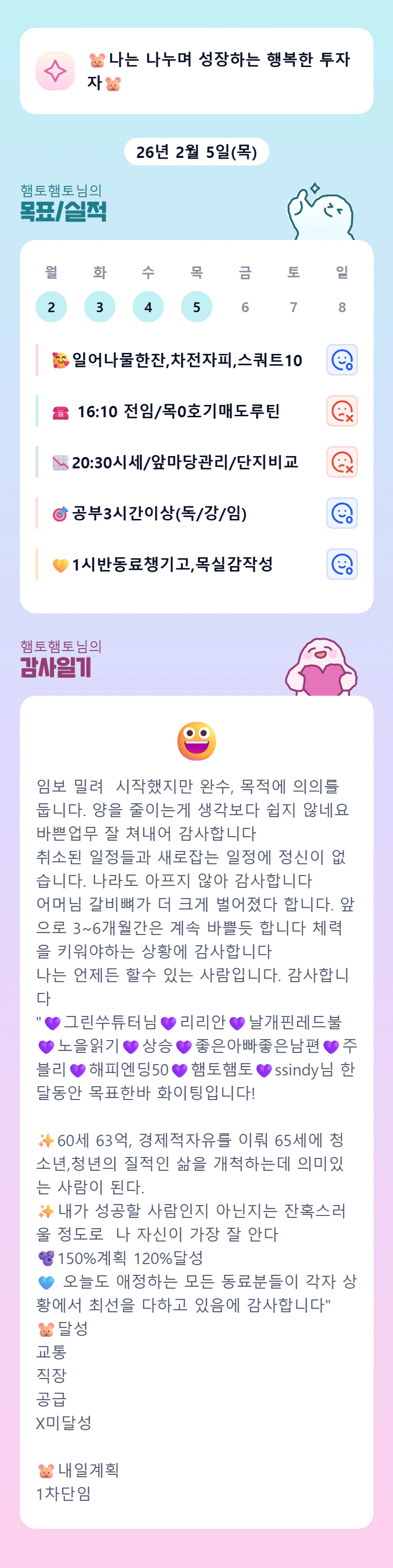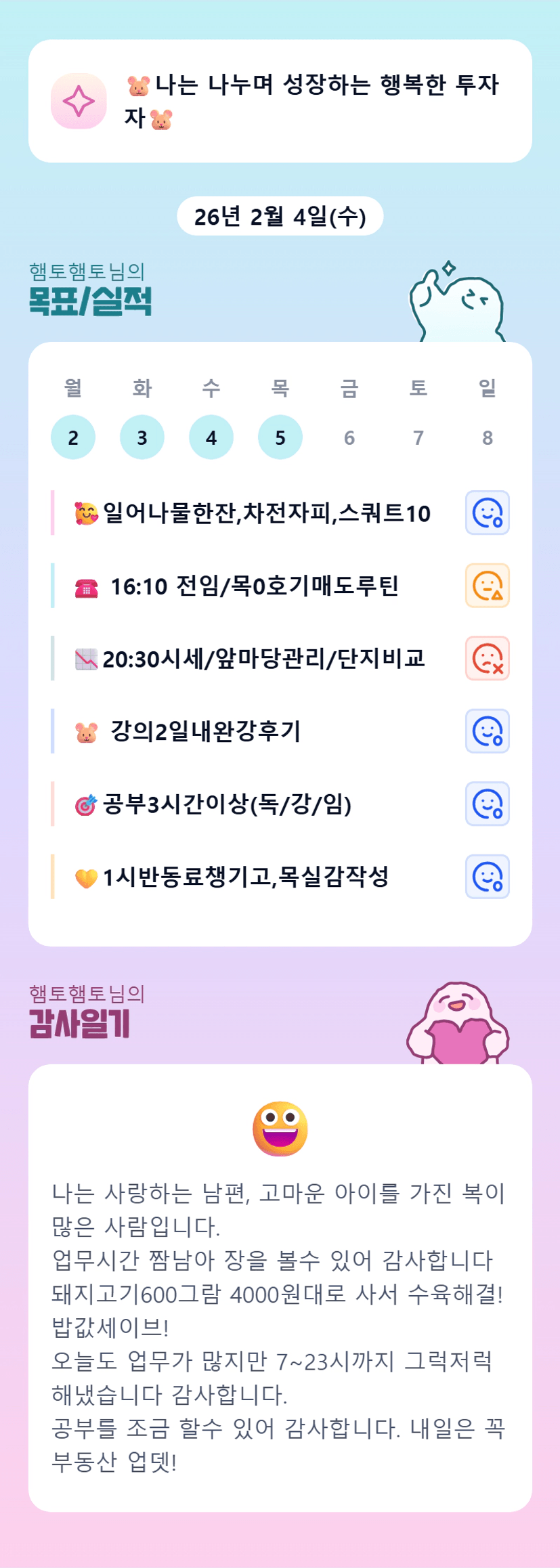 살림꾼 햄토님!! 일도! 투자도! 다 해낼수 있는 햄토님 빠팅!!