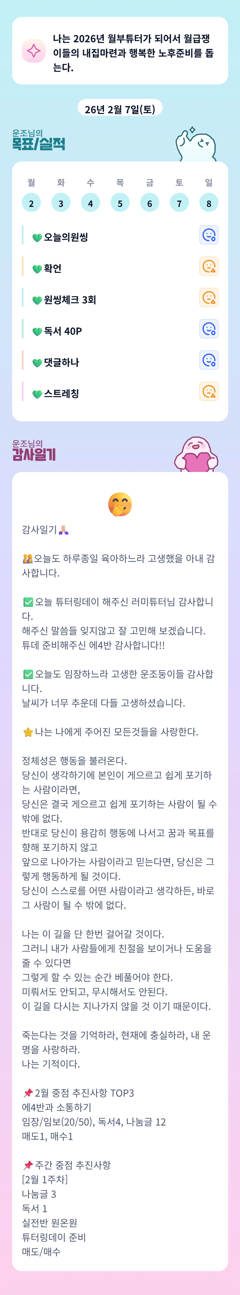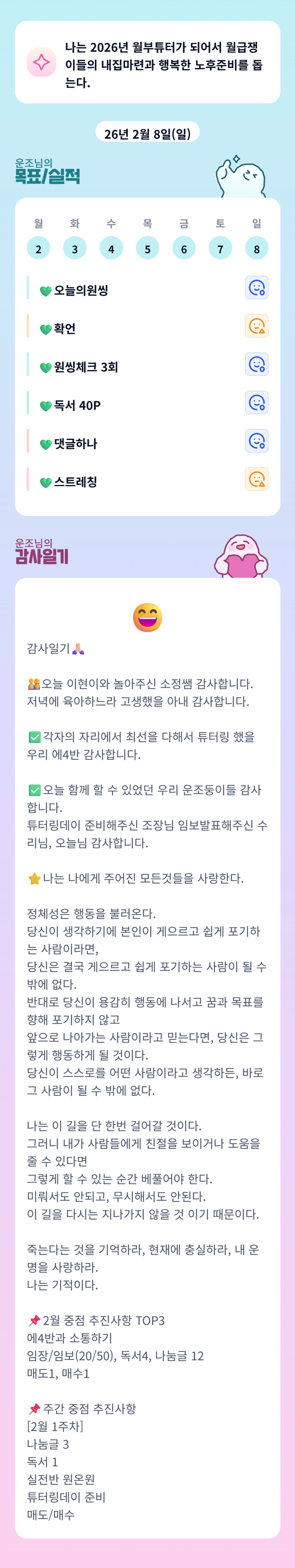 힘들어하는 동료들을 돕고, 때로는 함께 웃고 또 함께 울면서 해나가려고 합니다.