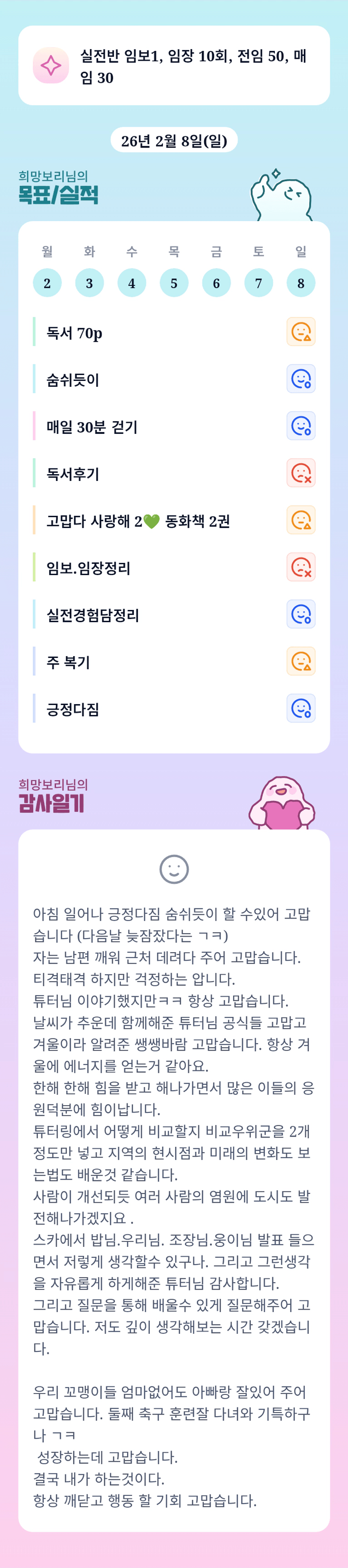 크으 보리님 상큼 감사일기~ㅎㅎ 어제 고민하시던 점은 해결되셨나요오~ 필요하신 일 있음 언제든 말씀주셔요ㅠ (보리님 그런데 조이름이 잘렸어요..ㅋㅋㅋ 우리님꺼 복사하신거같은데 임티가..ㅋㅋㅋ 우리님 전용 이모지 ㅎㅎ)