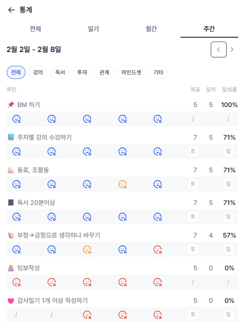 2️⃣ 이번 주 목실감을 작성하면서 느낀점과 더불어 한 주 스스로 어떻게 지냈는지 간단한 회고를 적어보아요 :)