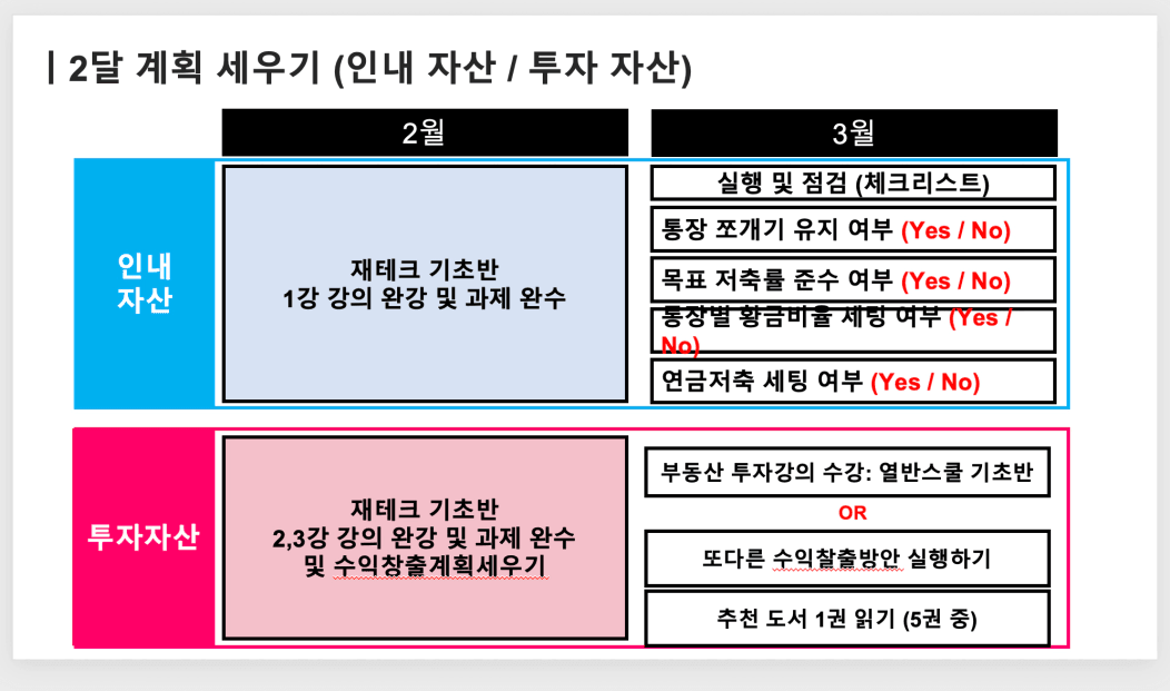 2️⃣ 2달 계획 확인 후, 한달 간의 목표와 확언 부분 작성