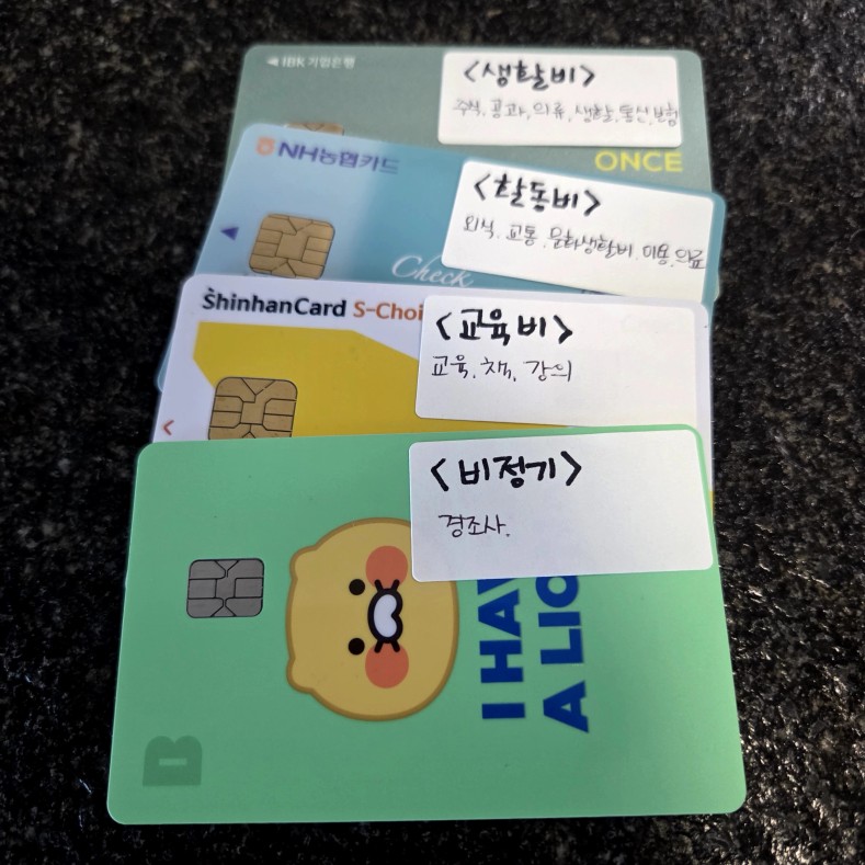 신용카드는 쓰는게 없었고, 이래저래 기존에 쓰던 계좌와 카드로 통장쪼개기 완료🍀 했습니다.