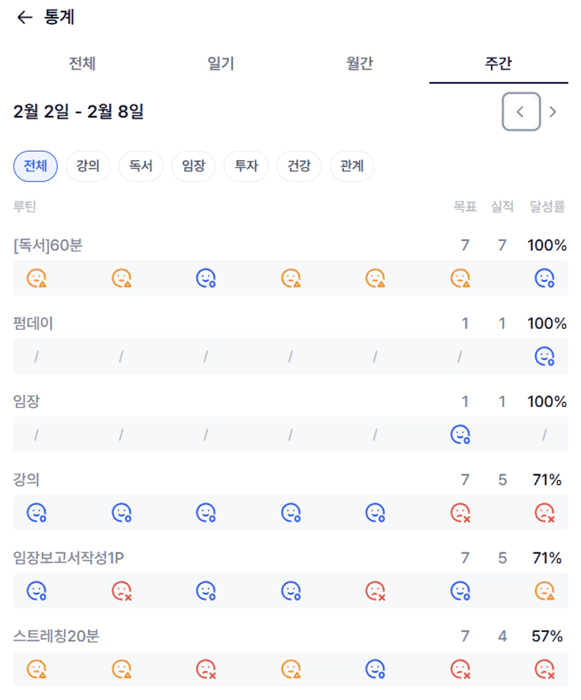 1️⃣ 목실감 - 통계 - 주간으로 들어가 이번주 나의 목실감 현황을 인증해주세요 ! :)