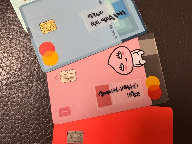 1. 용도별로 나눈 카드 인증샷 (모바일 통장쪼개기 인증샷도 좋아요!)