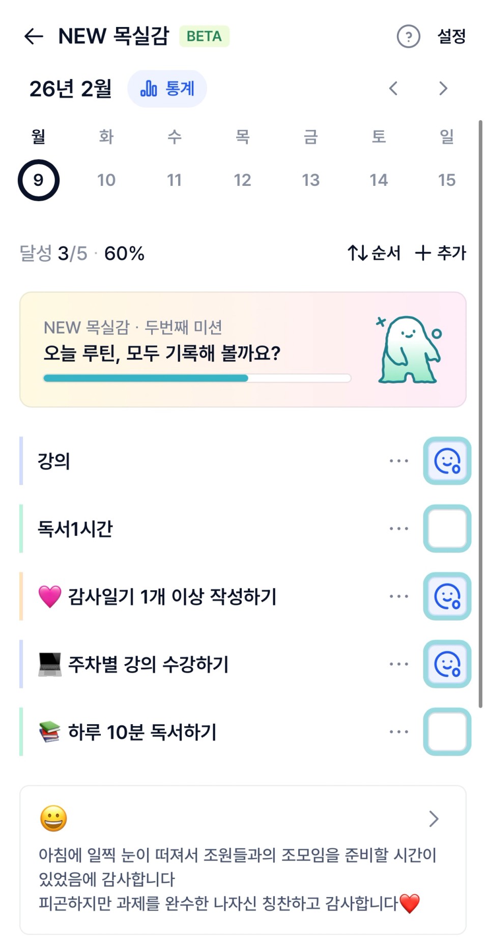 먼저 솔선수범하는 모습을 보여주지 못했기 때문일까, 목실감 작성하며, 루틴을 체크해보고