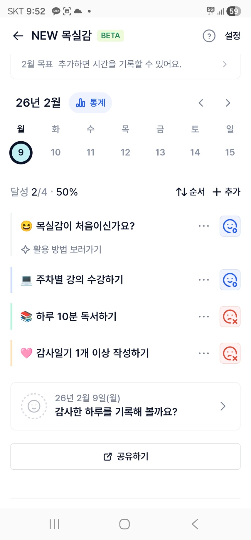 다음 날 부터 다시 새로운 마음으로 목실감 작성하기를 꼬옥 해주시기 바랍니다!
