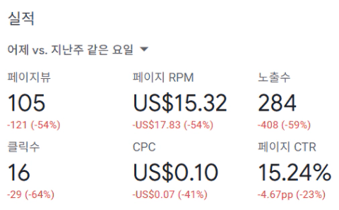 페이지뷰와 클릭수는 조금 늘었지만, CPC가 엄청 떨어지다…ㅋㅋ