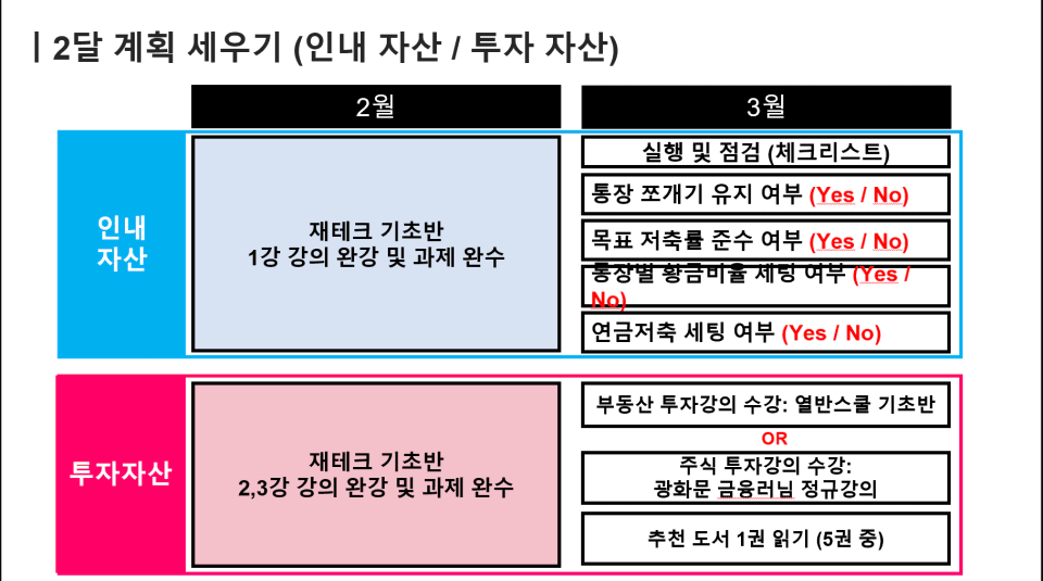 2️⃣ 2달 계획 확인 후, 한달 간의 목표와 확언 부분 작성