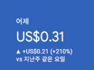주말에 그래도..지금까지 한것중에는 좀 높아져서 다행이라는 생각이 언제쯤 이 0.달러에서 벗어날것인가~