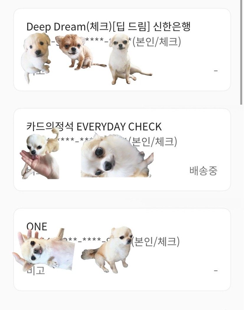 1. 용도별로 나눈 카드 인증샷 (모바일 통장쪼개기 인증샷도 좋아요!)