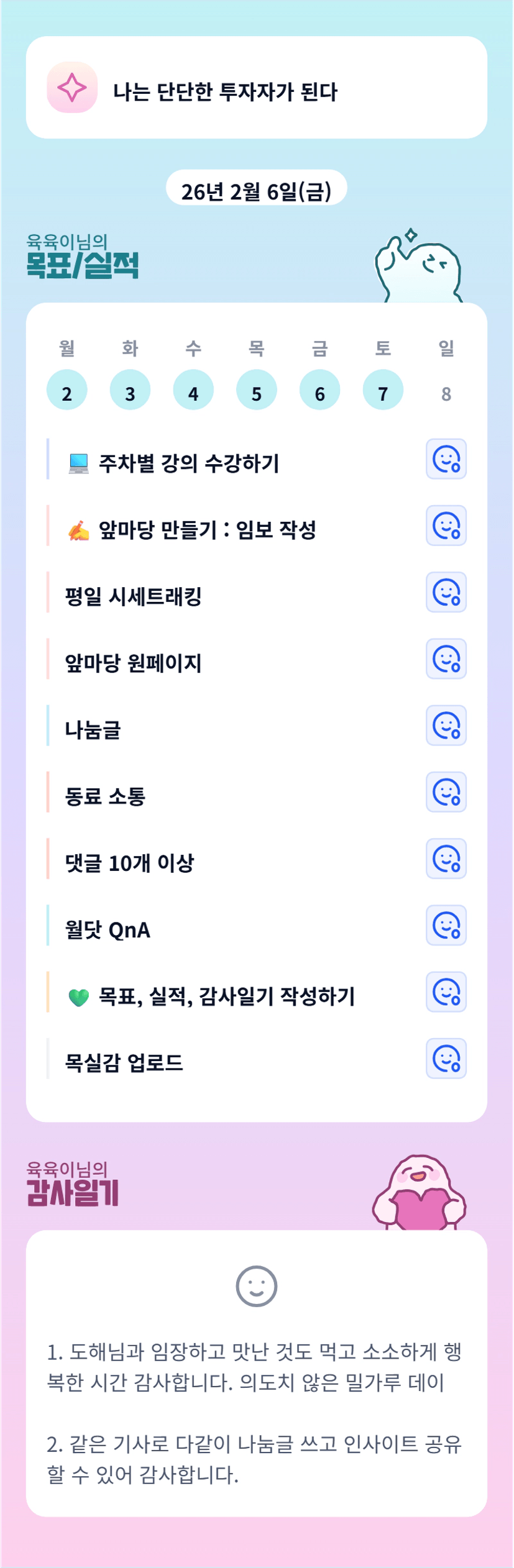 늘 감사합니다 육부님! 고생많으셨어요 :)
