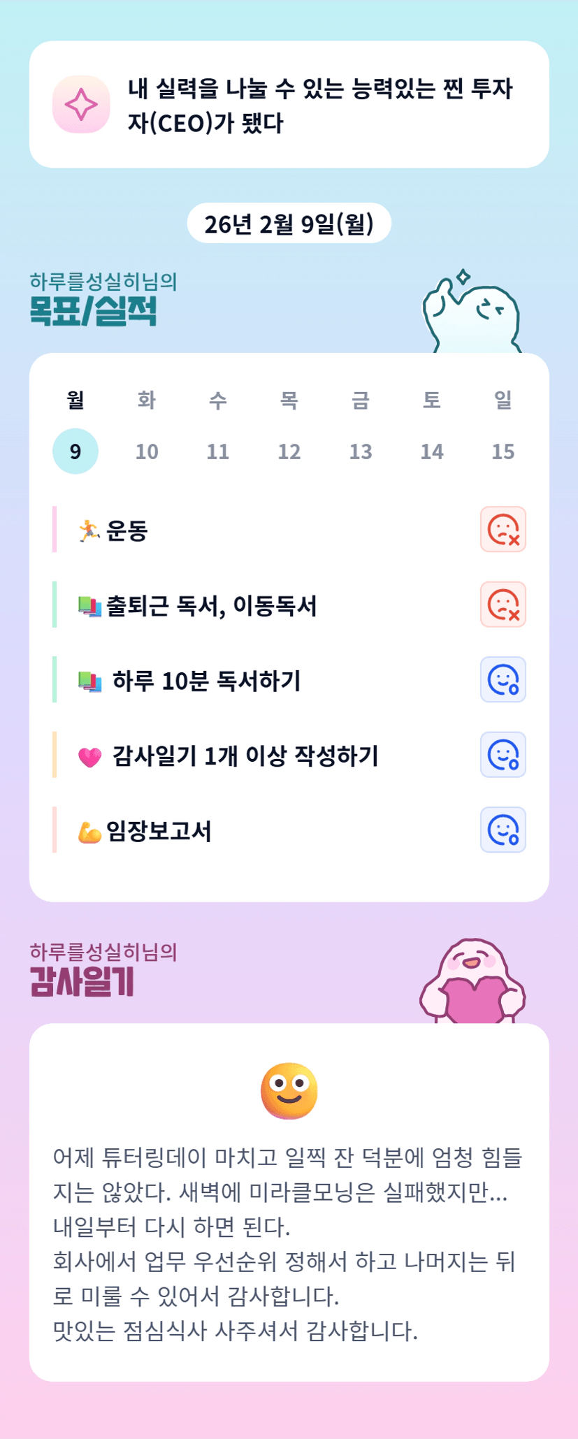 하루님 저도 아무것도 못하고 떡실신 ㅋㅋㅋㅋㅋ 컨디션 회복도 중요한 듯 해요! 다시 하면 되니까요^^ 화이팅 화이팅!! ㅎㅎ