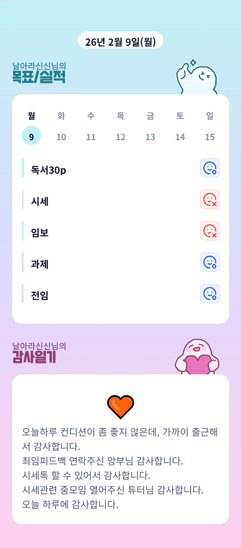 신신님 컨디션이 안좋으셨군요 ㅜ 몸조리잘하세요!!!