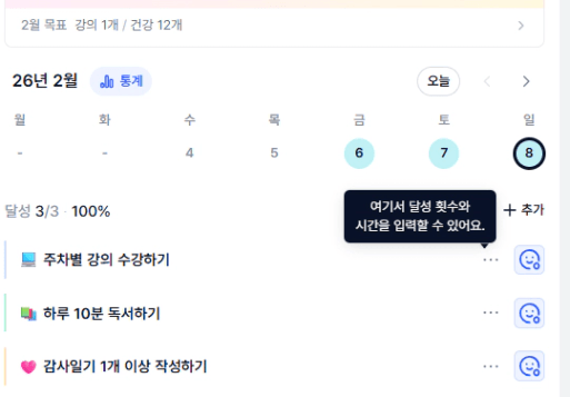 1️⃣ 목실감 - 통계 - 주간으로 들어가 이번주 나의 목실감 현황을 인증해주세요 ! :)
