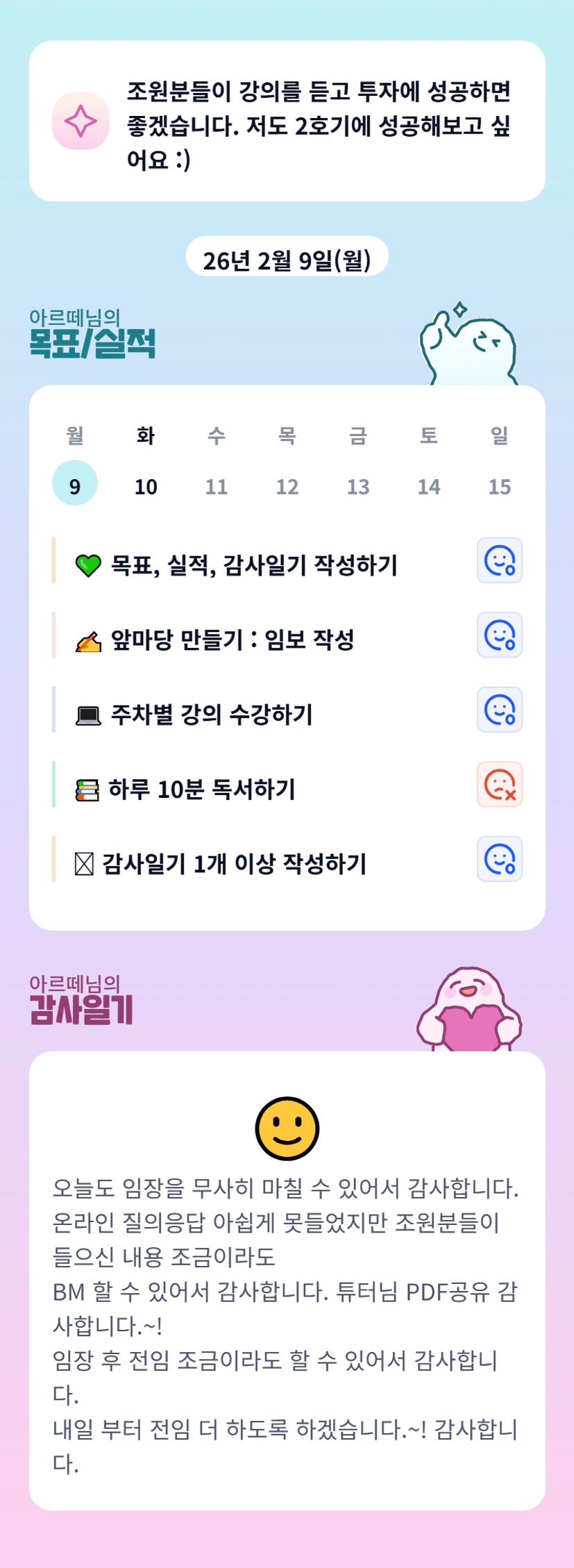 아르떼님 단임 고생하셨어요~!! 전임 빠이팅!!