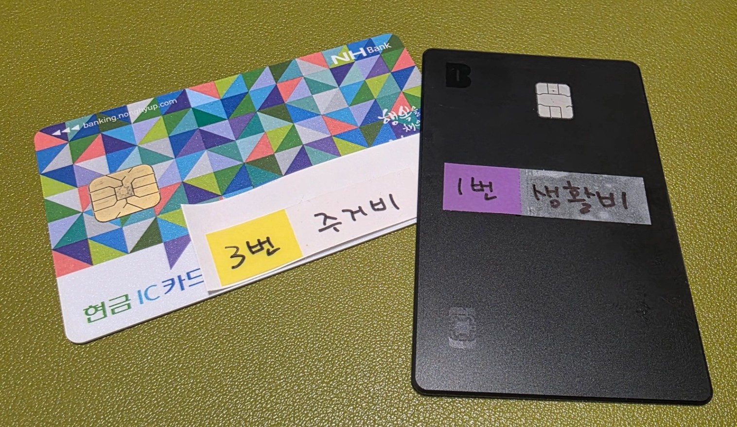 1. 용도별로 나눈 카드 인증샷 (모바일 통장쪼개기 인증샷도 좋아요!)