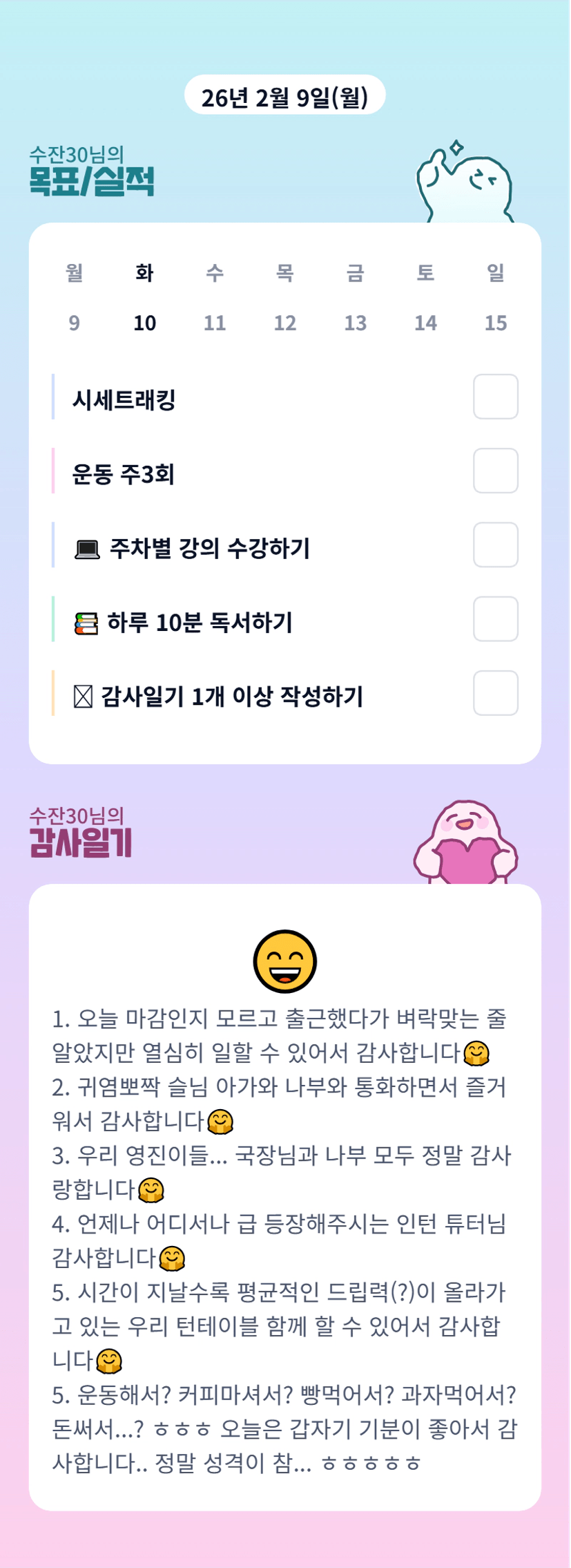 ㅋㅋㅋㅋ어찌됐든 기분좋았다니 다행이에용~!😆잔부님 목소리 들려줘서 넘 고마워용🩷내 애교를 받아랏 데헷뀽(*°▽°*)