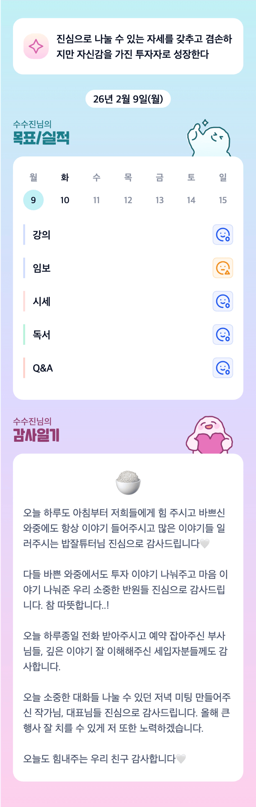 쓔진님 풍성한 시세 이야기와 뉴슈톡 늘 감사해용 💛 오늘 하루도 고생하셨어요~!!