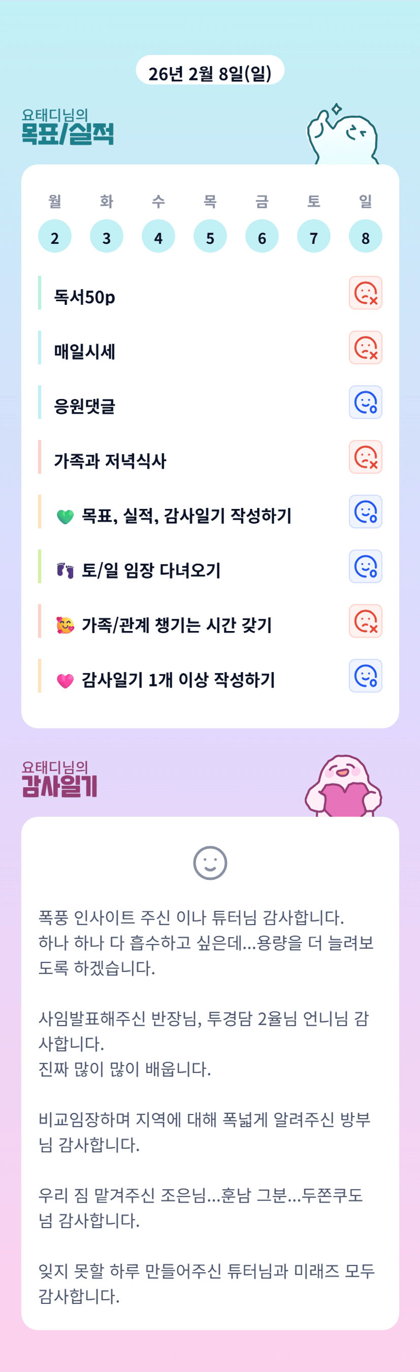 감사감사룰루랄라!!저도 감사합니다 태디님!!! 질문 주신거 확실히 답변 못드려서 죄송합니당 ㅠㅠ