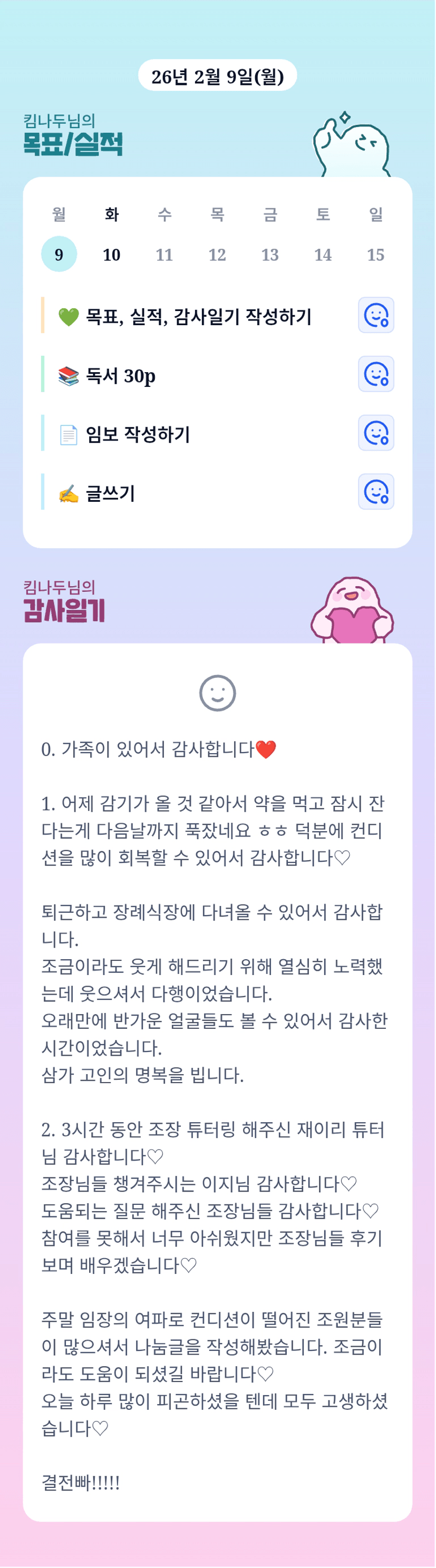 임보 40장 / 글쓰기 4개 / 독서 3권