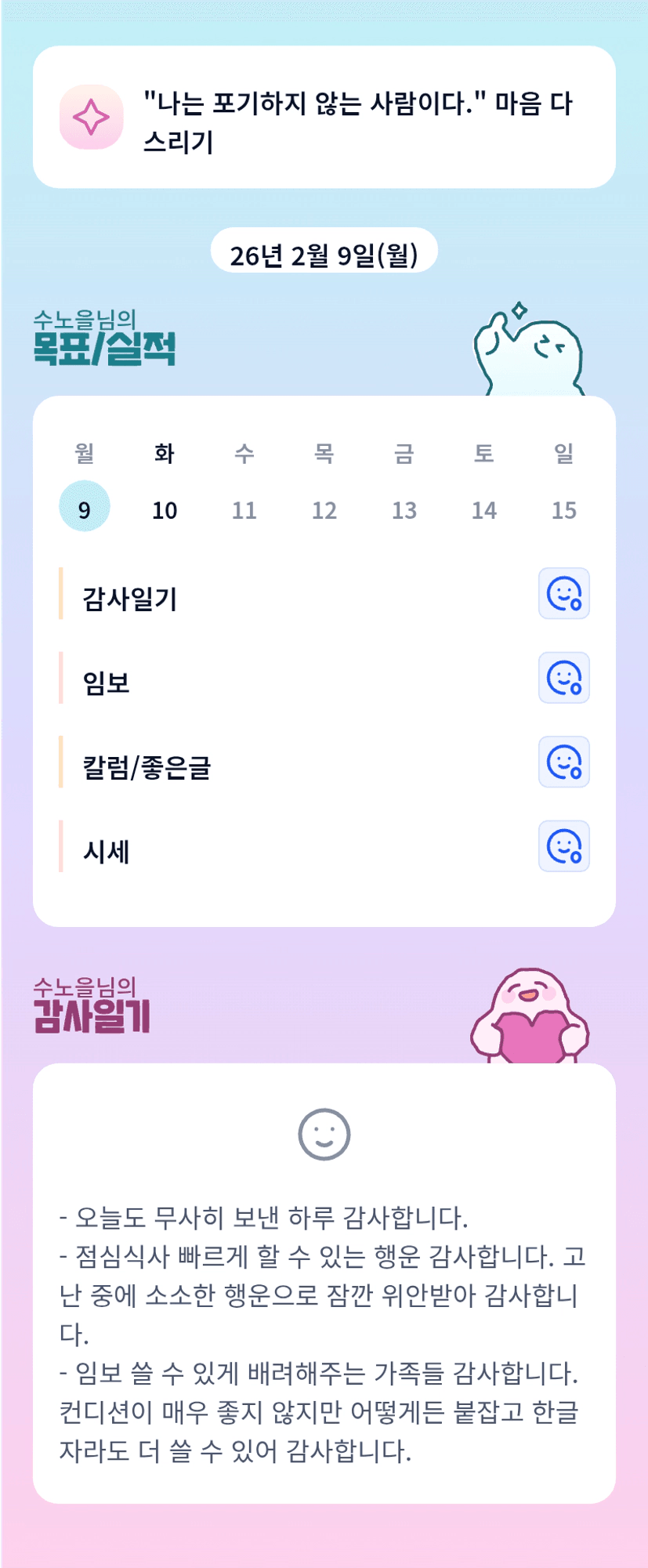 노을님 할 수 있는 상황에서 해나가는 모습 멋져요~ 건강도 챙기면서 같이 해봐요~