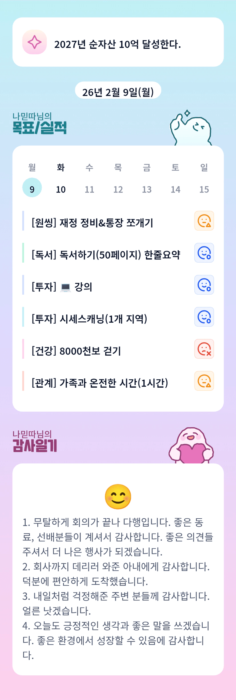 조장님 몸은 좀 괜찮으신가요? 걱정됩니다. 바쁘신 와중에도 꾸준한 모습 너무 리스펙합니다 :) 조장님 목실감 보고 잠시 나태한 마음 접고 갑니다 화이팅!