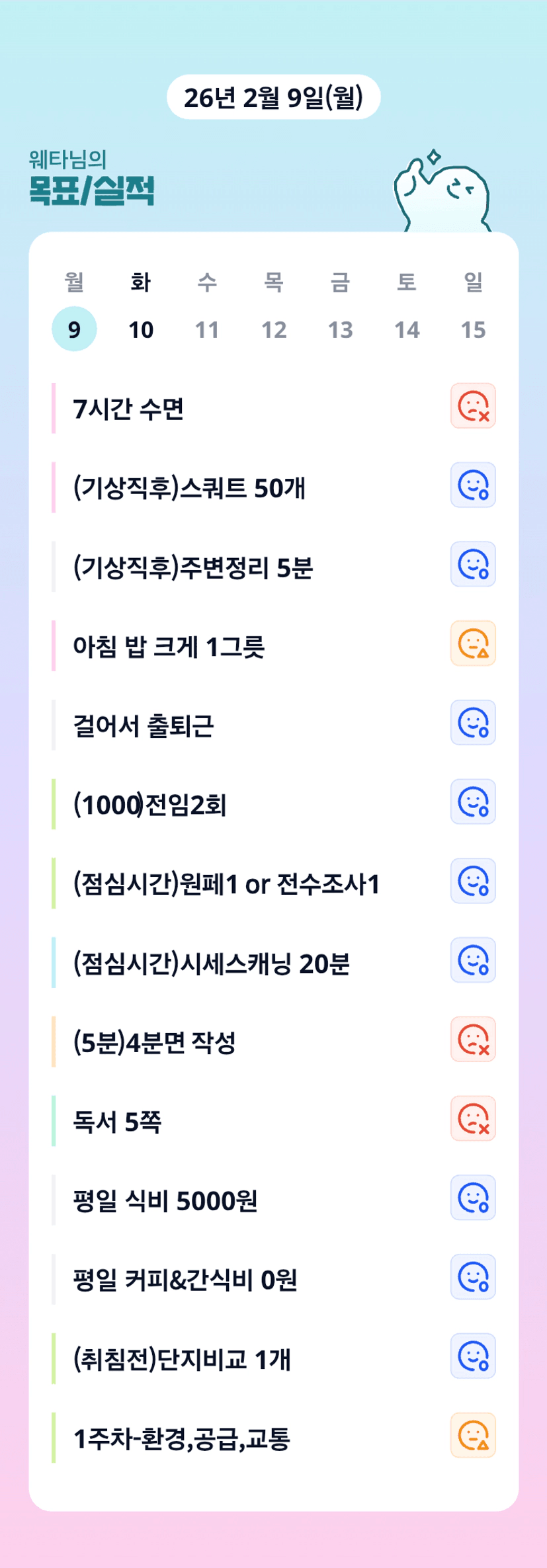 ㅋㅋㅋ웨타님 목실감이 엄청 늘었네요~~👍👍 수면 7시간과 아침 밥 크게 1그릇 ㅎㅎㅎ😁 오늘도 파이팅입니닷!!