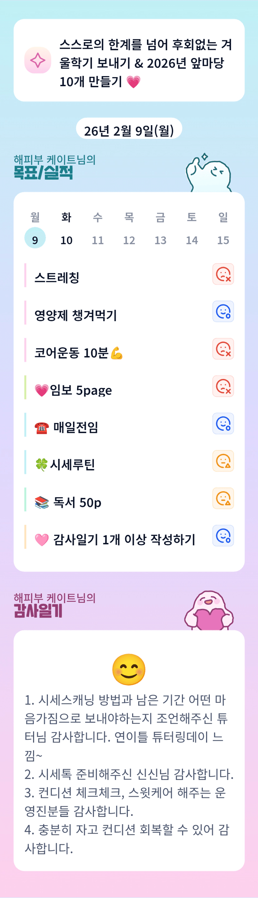 케이트님~ 컨디션 관리하면서 화이팅입니다!
