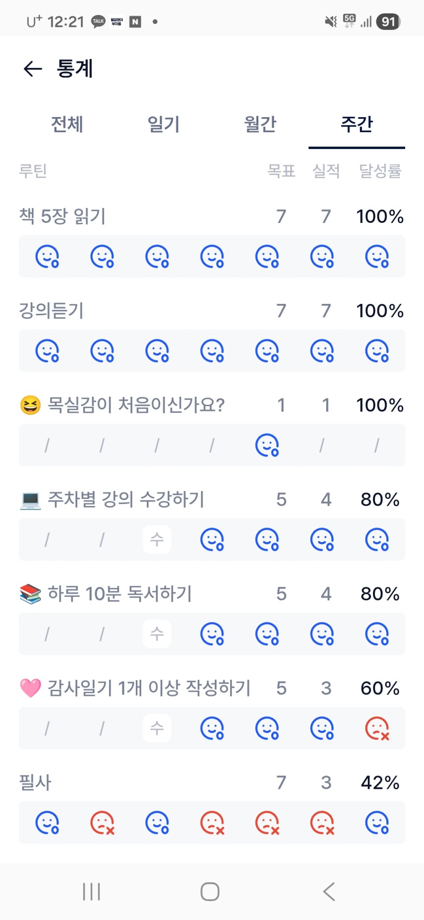 2️⃣ 이번 주 목실감을 작성하면서 느낀점과 더불어 한 주 스스로 어떻게 지냈는지 간단한 회고를 적어보아요 :)