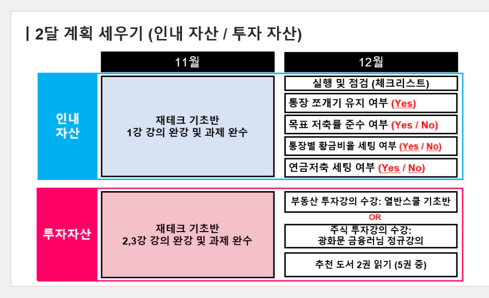 통장 별 황금비율 세팅 완료, 연금저축 세팅 왼료, 그리고 재테크 기토반 강의 완강 및 과제 완수 할것임