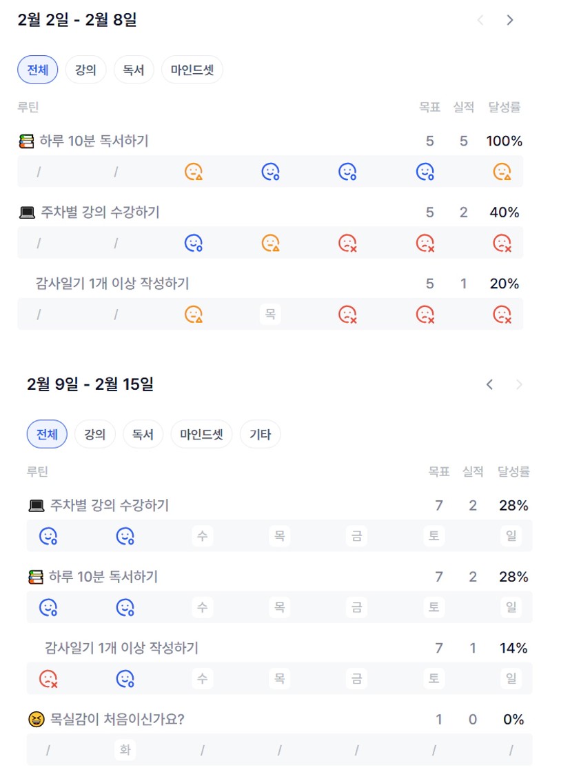 2️⃣ 이번 주 목실감을 작성하면서 느낀점과 더불어 한 주 스스로 어떻게 지냈는지 간단한 회고를 적어보아요 :)