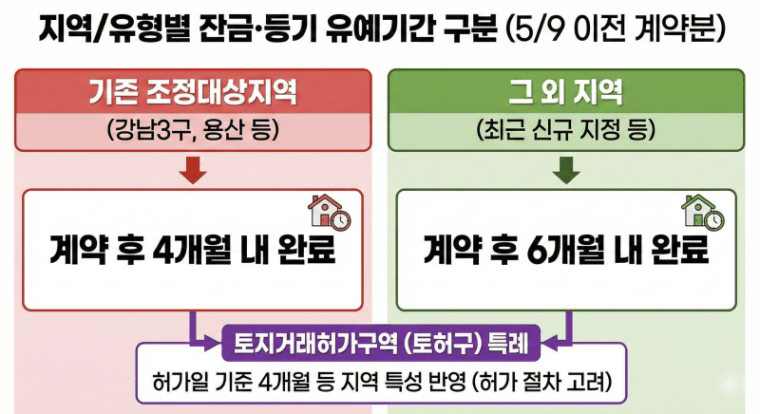 1. 5.9일까지 등기가 넘어가야했지만 지역에 따라 최대 6개월 잔금 조건 가능