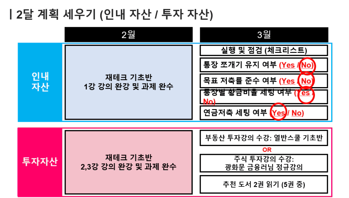 2️⃣ 2달 계획 확인 후, 한달 간의 목표와 확언 부분 작성