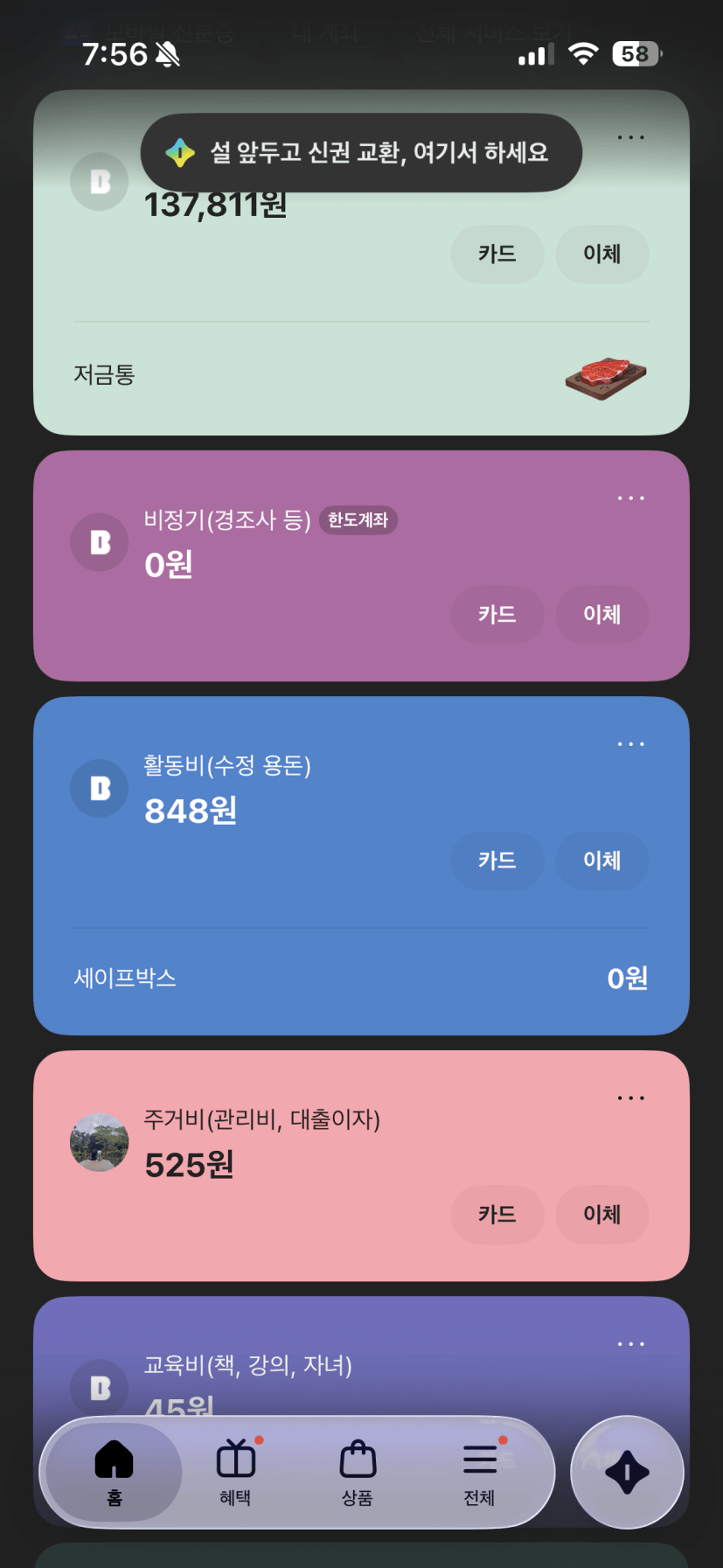 카드는 현재 배송중! :) 다행히 카카오뱅크로 열심히 계좌 오픈해둔 덕에 5개 세팅 완료!