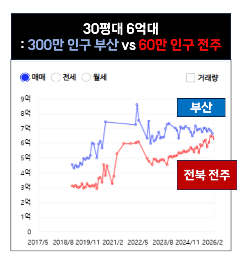 수도권은 일자리로 수요가 유지됩니다. 부산은 어떤가요? 대기업 일자리는 적지만 여전히 지방 최대 규모인 300만 인구가 거주하고 있습니다.