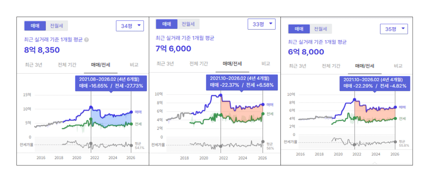 특히 선호하는 구들의 5~8억대 아파트는 여전히 저렴한 구간입니다.