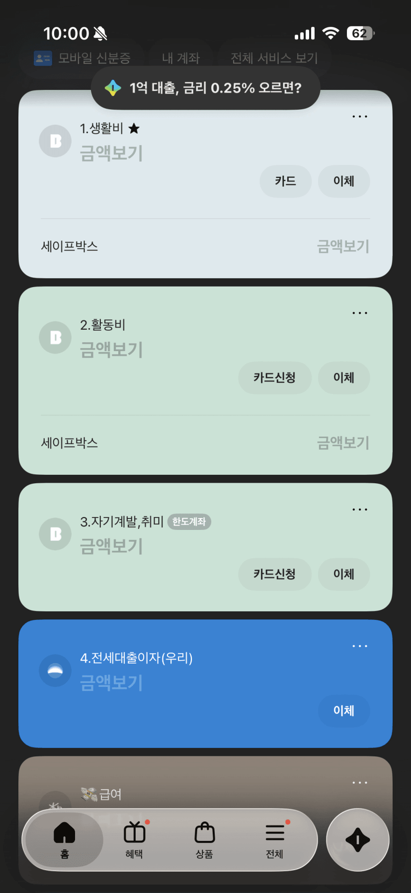 목적과 용도보다는 카드의 혜택 기준으로만 생각하고 나눠놓고 있었어서 생각보다 돈을 쓰는 흐름이 보이지 않았던게 확실히 느껴졌습니다.