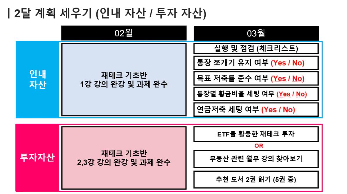 2️⃣ 2달 계획 확인 후, 한달 간의 목표와 확언 부분 작성