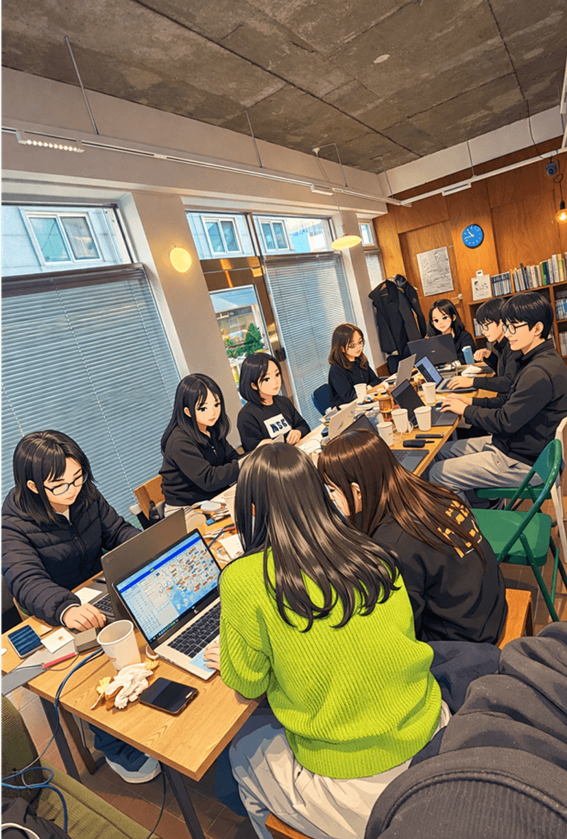 ์ €๋Š” ๋™๊ธ€ํ‚ด๋‹˜๊ณผ ํ•œ ์กฐ๊ฐ€ ๋˜์–ด ๋‹จ์ง€ ์ฃผ๋ณ€ ๋ถ„์œ„๊ธฐ์™€ ์œ ๋™ ์ธ๊ตฌ๋ฅผ ๊ด€์ฐฐํ•˜๋ฉฐ